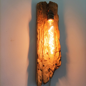 Ręcznie zrobione dwie lampy ścienne z drewna znalezionego na plaży
