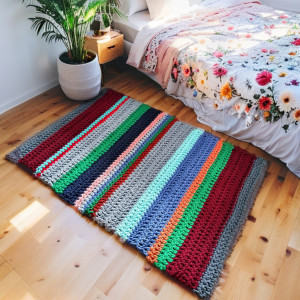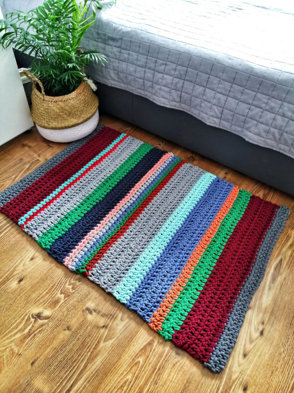 Dywan ze sznurka, wykonany ręcznie na szydełku. Sznurek 5 mm, bawełniany.