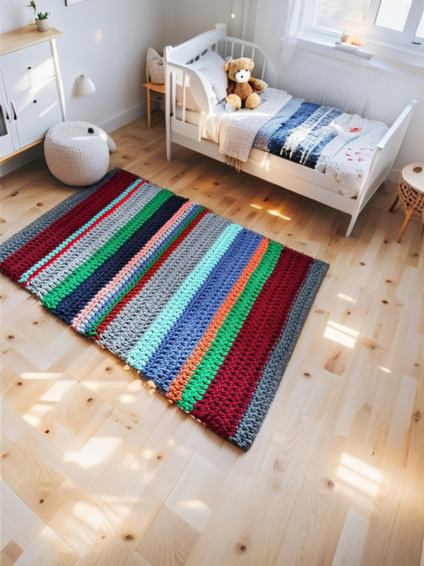 Idealny do pokoju dziecięcego, do położenia koło łózka w sypialni, do salonu, do kuchni lub wg własnego uznania. Jest miły pod stopami, miękki. Łatwy do utrzymania w czystości.