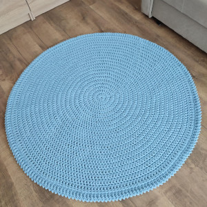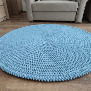 Dywan ze zdjęcia jest wzorem. Proszę o wybranie koloru z wzornika. Na zdjęciu kolor jasny niebieski.
