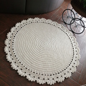 Dywan o średnicy 120cm, wykonany metodą szydełkowania z polskiego sznurka bawełnianego 5mm.