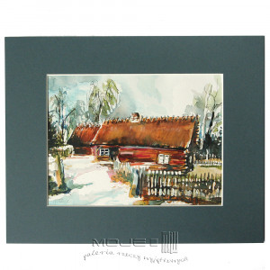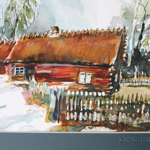 Wielobarwna akwarela, namalowana na papierze akwarelowym 200 g. Oprawiona w zgaszone szare passe partout, harmonizujące z obrazkiem i dopełniające kompozycję.
