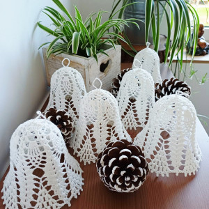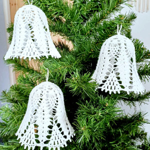 Dzwonki szydełkowe na choinkę w kolorze białym.