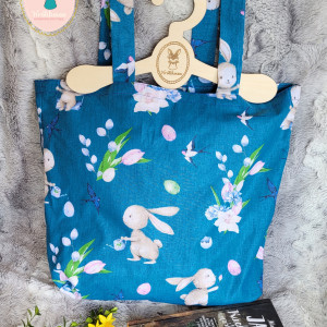 Ekologiczna, bawełniana torba na zakupy: króliki niebieskie - Sklep Online Artyferia