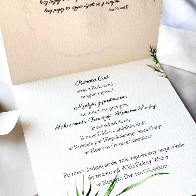 Zaproszenia komunijne na pięknym bawełnianym fakturowanym papierze