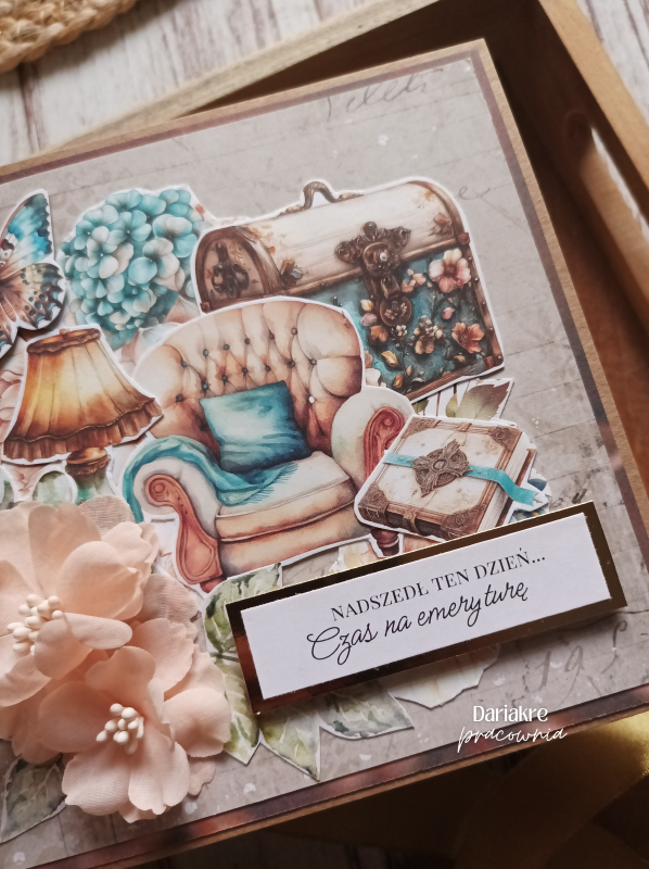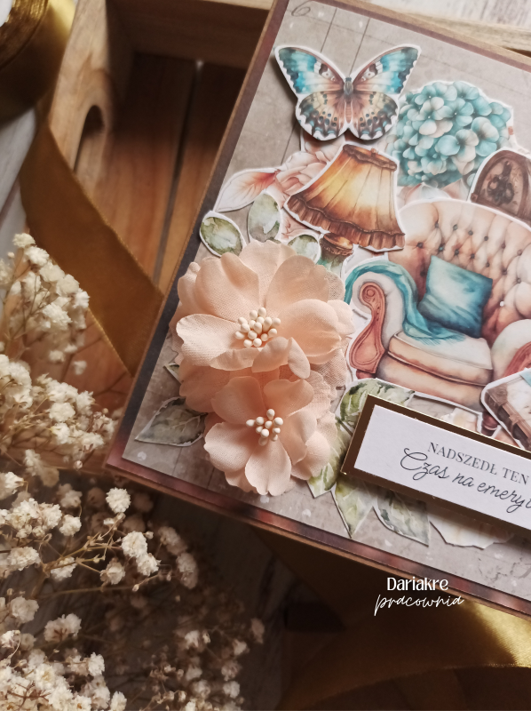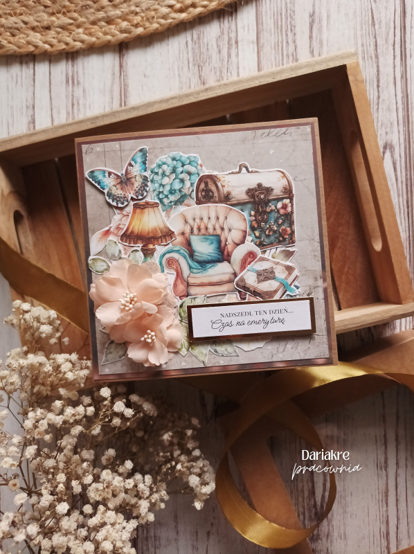 Emerytura, kartka z okazji przejścia na emeryturę, brąz