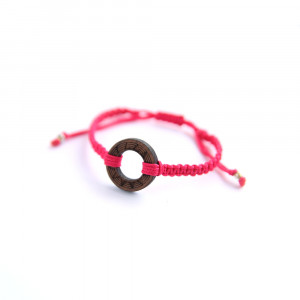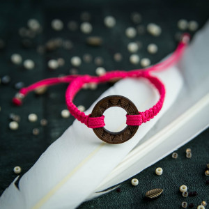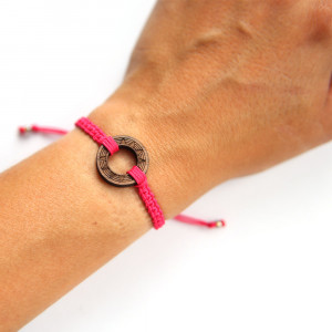 Bazę bransoletki stanowi sznurek w ciemnym odcieniu różu.
