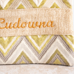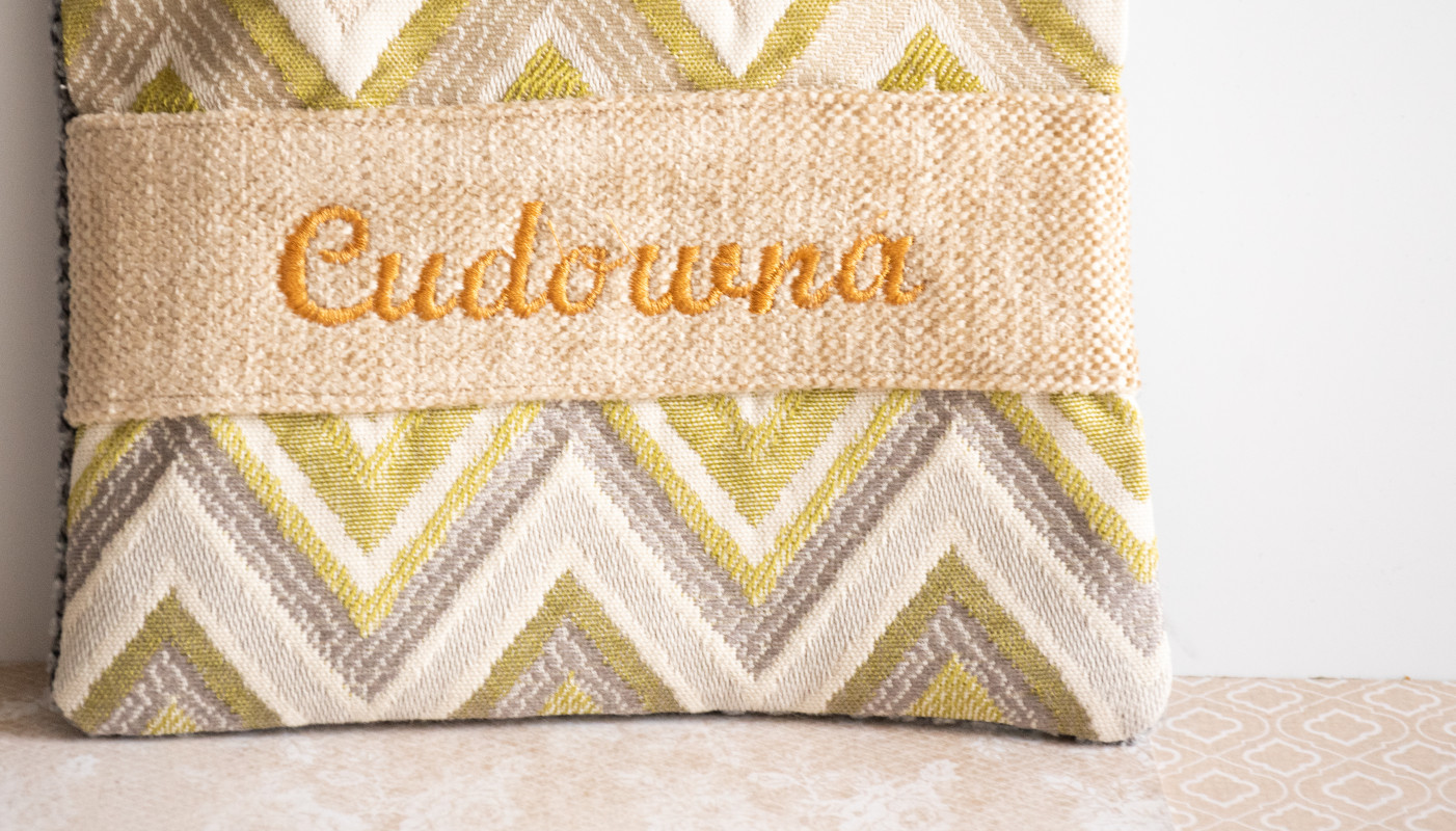 Uszyte zostało z połączenia ciekawych tkanin obiciowych