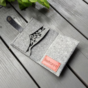 Portfel z filcu to propozycja dla wszystkich, którzy mają ochotę mieć oryginalny i wyjątkowy produkt. Portfel ten wykonaliśmy z filcu 100% poliestrowego. Na zewnątrz znajduje się kieszonka na zamek. Suwak zakończony skórą naturalną w kolorze koniakowym. W środku znajdziemy 4 przegrody na karty. Jedna z kieszeni jest ażurowa. Nasza duża metka również tworzy mały schowek. Portfel zamykany paskiem z napem. Ten starannie uszyty portfel filcowy będzie również miłym prezentem.
