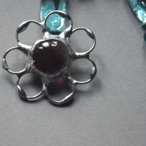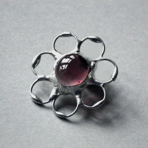 Fioletowy kwiatek - witrażowa broszka