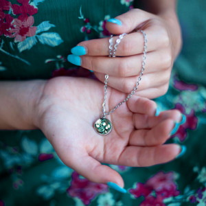 Uroczy naszyjnik z medalionem, w którym umieszczona jest autorska ilustracja. Ilustracja malowana jest w oryginale przez Kaję Gościniak, a miniatura ilustracji jest zatapiana pod szkiełkiem i oprawiona w medalion ze stali nierdzewnej, antyalergicznej. Ta metoda daje efekt tajemniczości i głębi medalionowi, kolory stają się jak żywe.