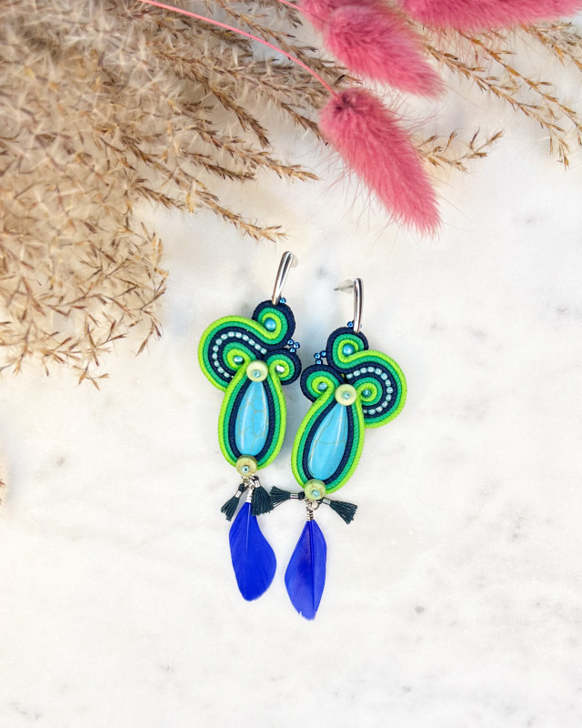 Freedom to kolekcja biżuterii sutasz inspirowana kobiecym dążeniem do wolności i niezależności. Intensywne kolory i pióra, jak u egzotycznego ptaka, są odzwierciedleniem dążenia do swobody i pełnego stania przy sobie.