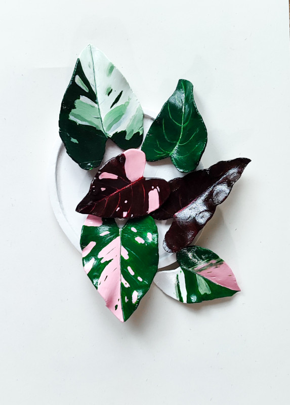 Gliniana broszka liść Philodendron Dark Lord