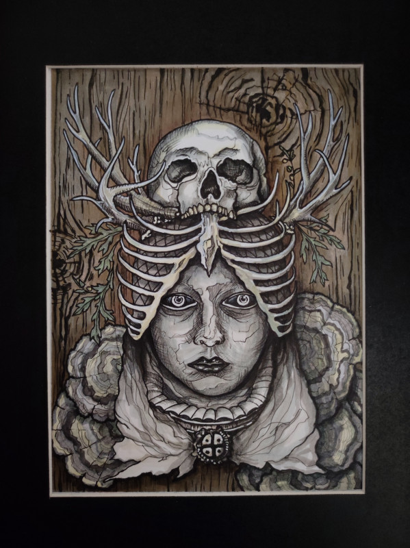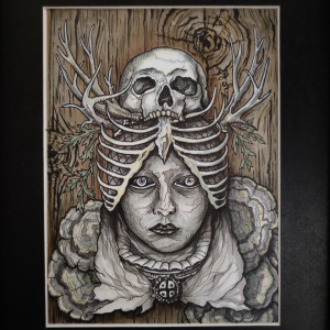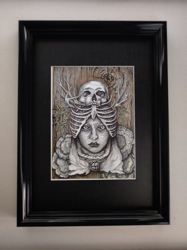 MATERIAŁ: papier, tusz, kredka (rama drewniana)
