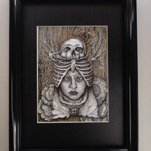 Unikalna grafika stworzona tylko w jednym egzemplarzu. Z tyłu haczyk umożliwiający powieszenie obrazu na ścianie oraz podpórka do postawienia. Obraz za szkłem.