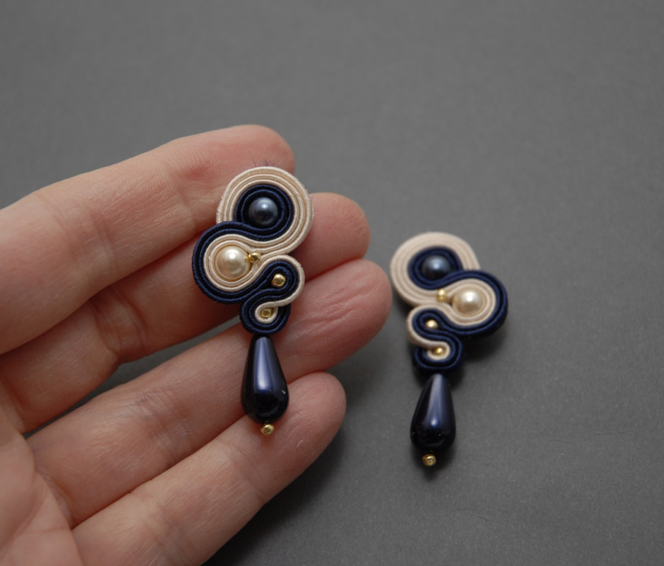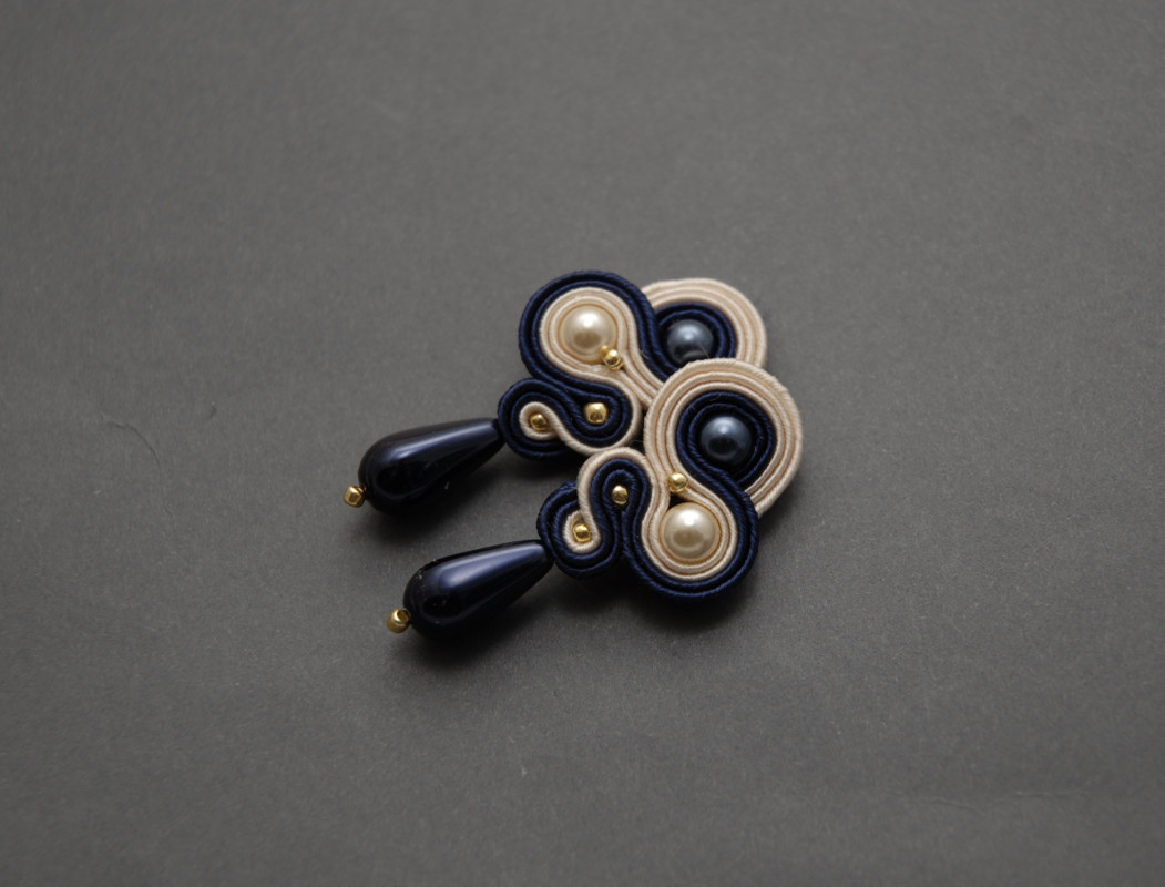 oferuję kolczyki lub klipsy zrobione haftem sutasz, ozdobione koralikami Preciosa i drobnymi koralikami