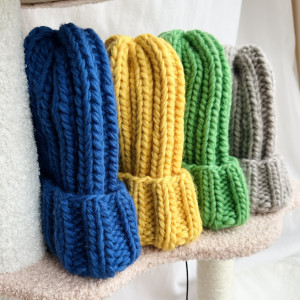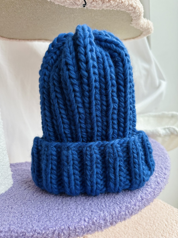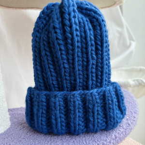 Gruba wełniana czapka 100% wełna beanie handmade kobalt