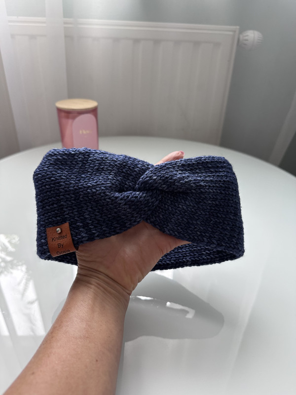 Wełniana opaska twist wykonana jest ręcznie na drutach z naturalnej włóczki, składającej się w 100% z wełny merino