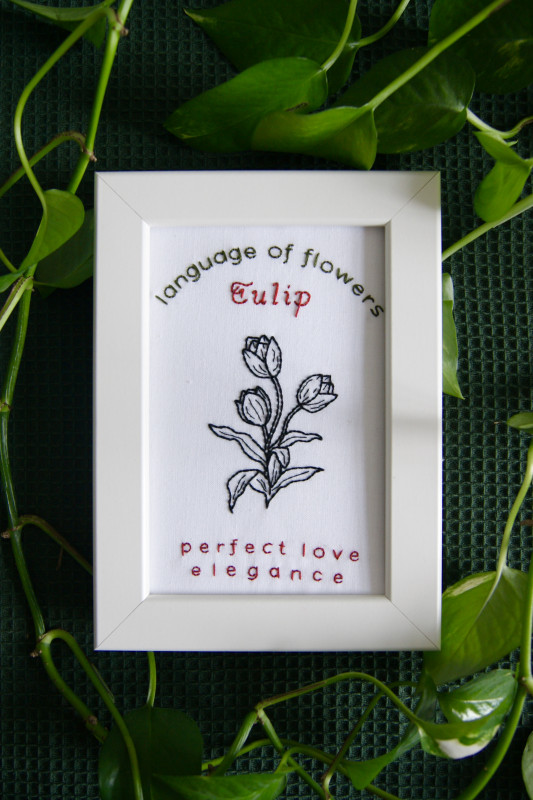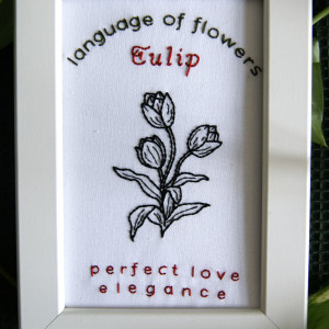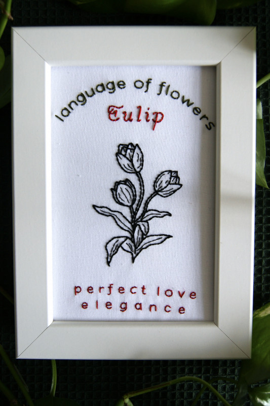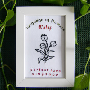 Haft wykonany ręcznie na materiale bawełnianym, usztywniony tekturą o wymiarach 10x15cm. Oprawiony w ramkę z płyty pilśniowej. Ramka ma z tyłu haczyk oraz podpórkę, dzięki której możesz wyeksponować ją w dowolny sposób. Choć nie jest widoczna na zdjęciach, do ramki dołączona jest również wykonana z tworzywa przednia osłonka, która ochroni haft przed uszkodzeniem czy zabrudzeniami.