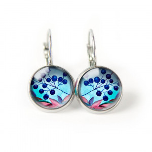 Kolczyki są w oprawie ze stali szlachetnej (antyalergicznej). Wymiary: ilustracja 12 mm, długość: 2,5 cm