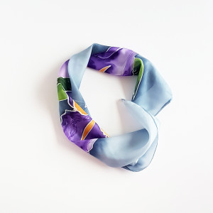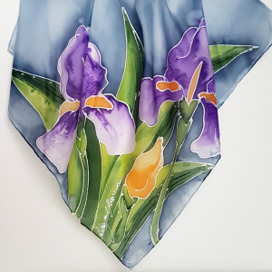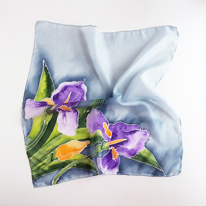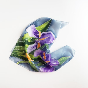 Jedwabna malowana apaszka - irysy na błękicie