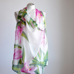 Jedwabna malowana chusta - lilie