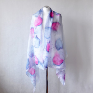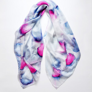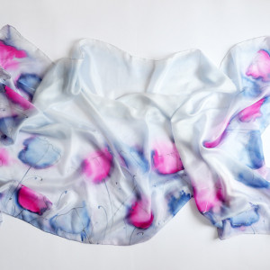 Do szala dołączona jest obszerna informacja o jedwabiu, malowaniu na nim i sposobie dbania o niego. Szal zapakowany jest w ręcznie malowaną ekologiczną torebkę. Podaruj sobie jedwabną przyjemność?