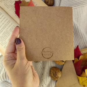 Kartka w rozmiarze 14x14 cm z kopertą w kolorze bazy kartki.