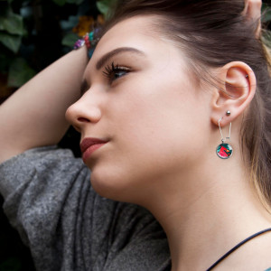 Unikatowe kolczyki długie z autorską ilustracją zatopioną pod szkiełkiem. Ilustracja w oryginale malowana jest akwarelą, a detale z ilustracji pomniejszane i umieszczane w kolczykach. Urocze malutkie ozdoby w pięknych kolorach, rewelacyjny prezent na każdą okazję!