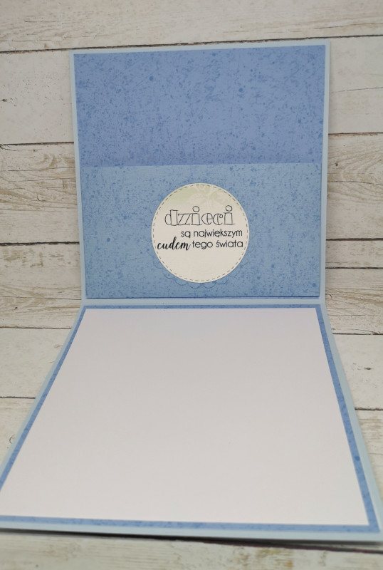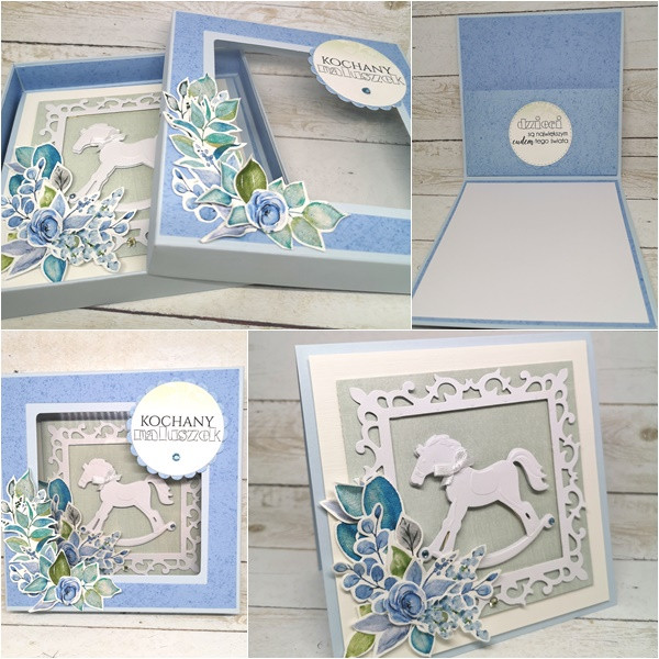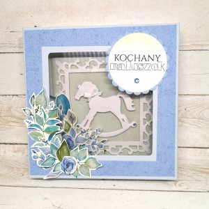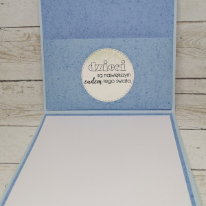 Na pudełeczku zamieszony został napis "KOCHANY maluszek" dzięki czemu karteczka ma uniwersalny charakter.