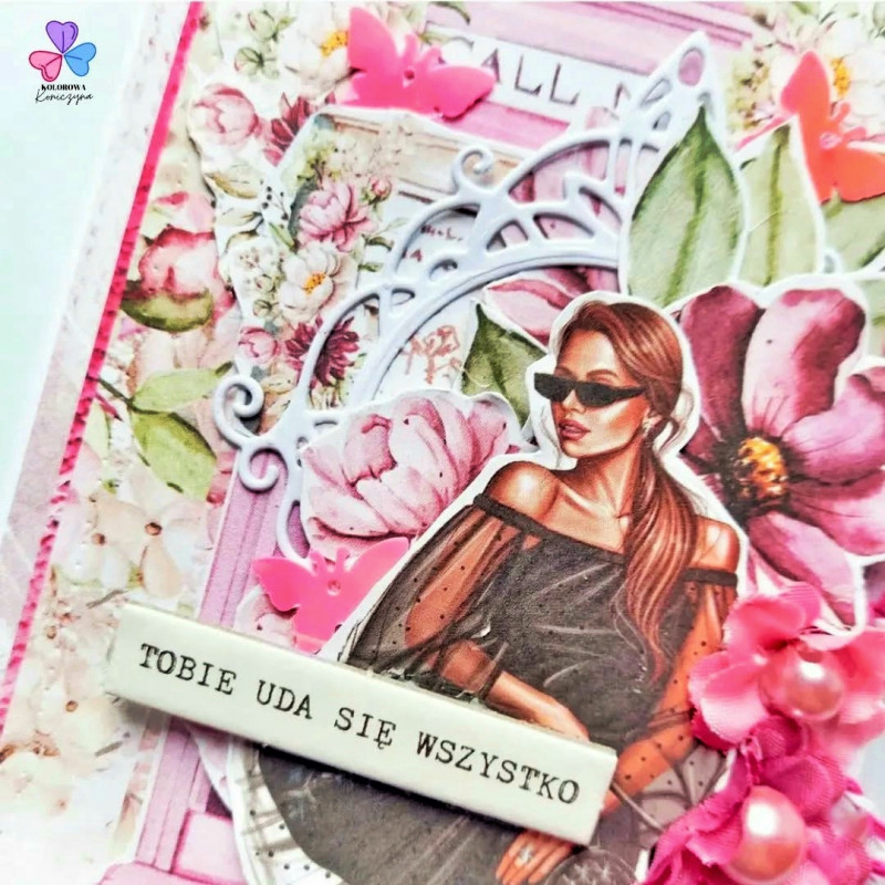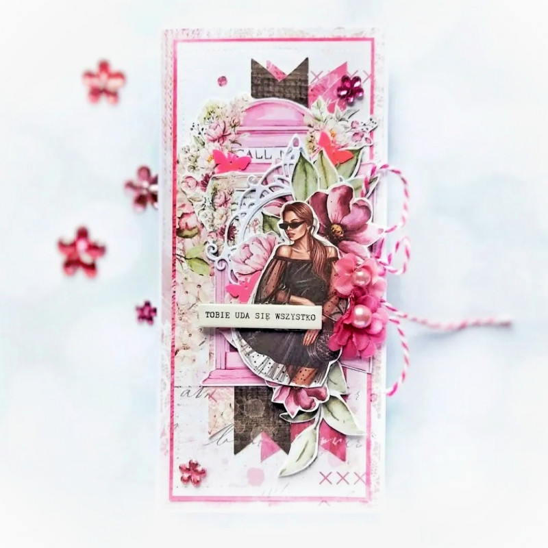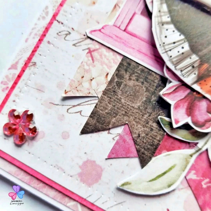 Kartka w środku jest pusta, przygotowana do wpisania życzeń. Do kartki dołączam kopertę w pasującym kolorze.