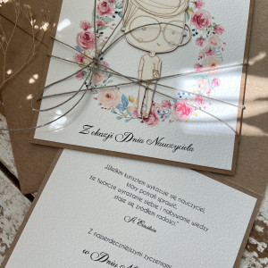 Stylowa kartka dla nauczyciela wykonana z papieru bawełnianego oraz kraftowego.