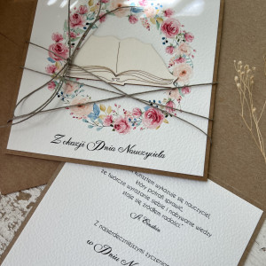 Stylowa kartka dla nauczyciela wykonana z papieru bawełnianego oraz kraftowego.