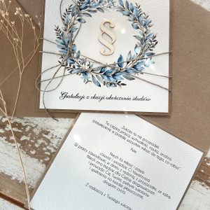 Stylowa kartka z okazji ukończenia szkoły, obrony pracy dyplomowej - w zestawie z kopertą. Wymiary kartki 14x14 cm.