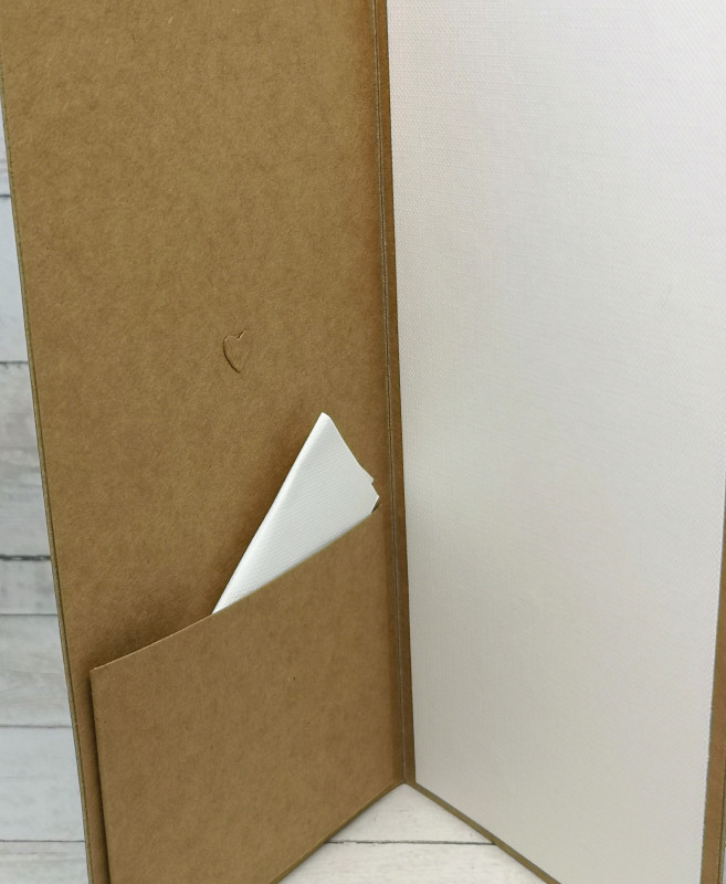 Wewnątrz zawiera kieszonkę na upominek w formie pieniężnej (na zdjęciu w kieszonce znajduje się papier)