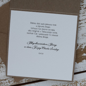 Wymiar kartki 14x14 cm, w zestawie brązowa koperta.