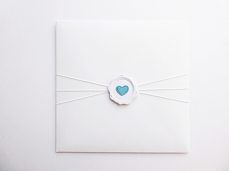 W komplecie jest elegancka biała koperta, która została przyozdobiona w sposób nawiązujący do kartki.
