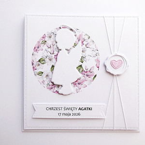 Kartka na Chrzest z aniołkiem-dziewczynką