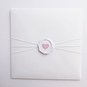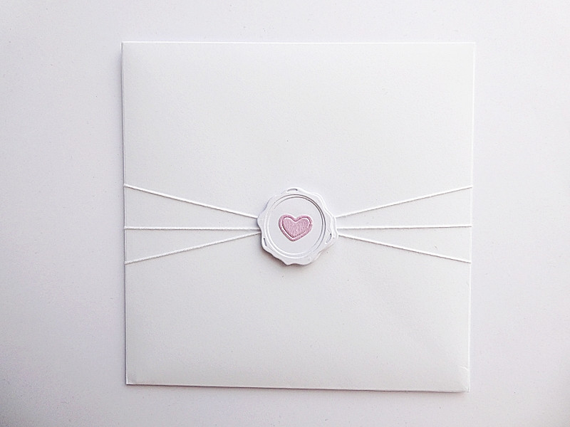W komplecie jest elegancka biała koperta, która została przyozdobiona w sposób nawiązujący do kartki.