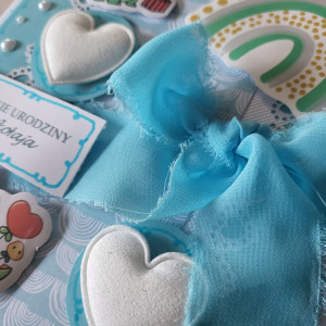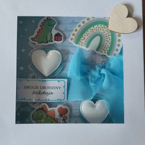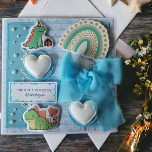 W tym wypadku mam do zaoferowania kartkę na urodziny dla chłopczyka z personalizacją o imię oraz opis, które to urodziny maluszka