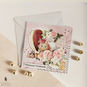 Kartka została wykonana ręcznie i z sercem. Jest pusta w środku, lecz jeśli potrzebujesz abym wkleiła życzenia, napisz mi o tym składając zamówienie.