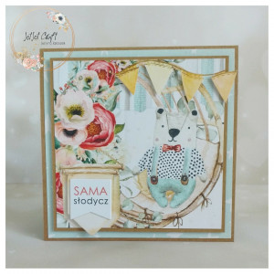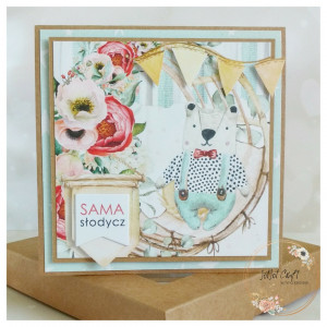 Kartka o wymiarach 14 x 14 cm w pudełku z okienkiem. W środku kartki jest miejsce na życzenia. Jest możliwość wydrukowania życzeń. Ich treść proszę przesłać podczas składnia zamówienia.Istnieje również możliwość doklejenia cyferki (liczba urodzin).