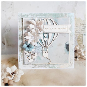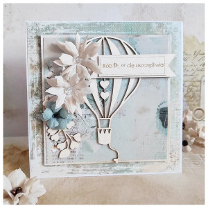 Kartka zapakowana jest w białe pudełko z okienkiem.