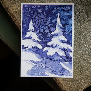 Kartka z motywem zimowego krajobrazu wprowadzi obdarowanego w świąteczny nastrój. Pocztówka jest reprodukcją autorskiej ilustracji.