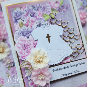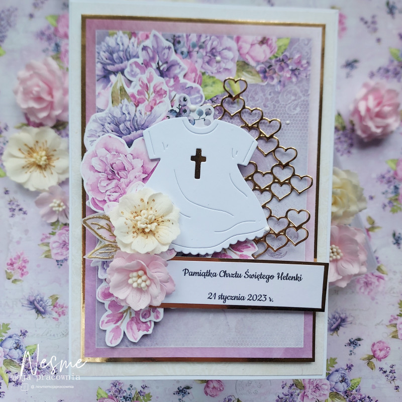 Kompozycja ułożona jest warstwowo tworząc efekt trójwymiarowości. Banerek z serduszek, które umieściłam dodają uroku całej pracy, ale także wzbudzają bardzo pozytywne emocje.