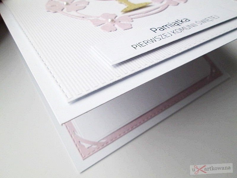 Kartka Pamiątka I Komunii biało-różowa #6