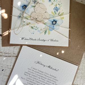 Stylowa kartka na pierwsze urodziny - w zestawie z kopertą. Wymiary kartki 14x14 cm. W zestawie z kopertą.