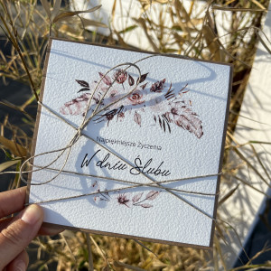 Stylowa kartka na ślub wykonana na bazie papieru kraftowego z dodatkiem starannie dobranego papieru ekologicznego bawełnianego 100% z nadrukiem grafiki.