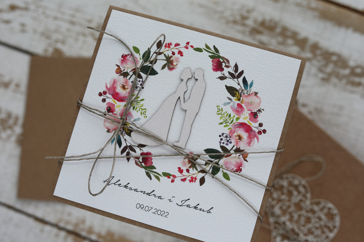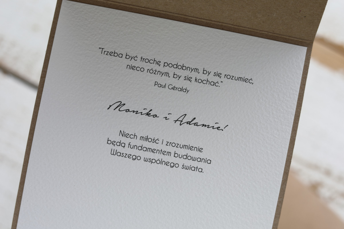Stylowa kartka na ślub wraz z pudełkiem i kopertą na pieniądze - wykonane z papieru bawełnianego oraz kraftowego oraz ozdobnej tekturki.