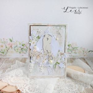 Kartka będzie pięknym i niepowtarzalnym dodatkiem do prezentu dla Państwa Młodych.